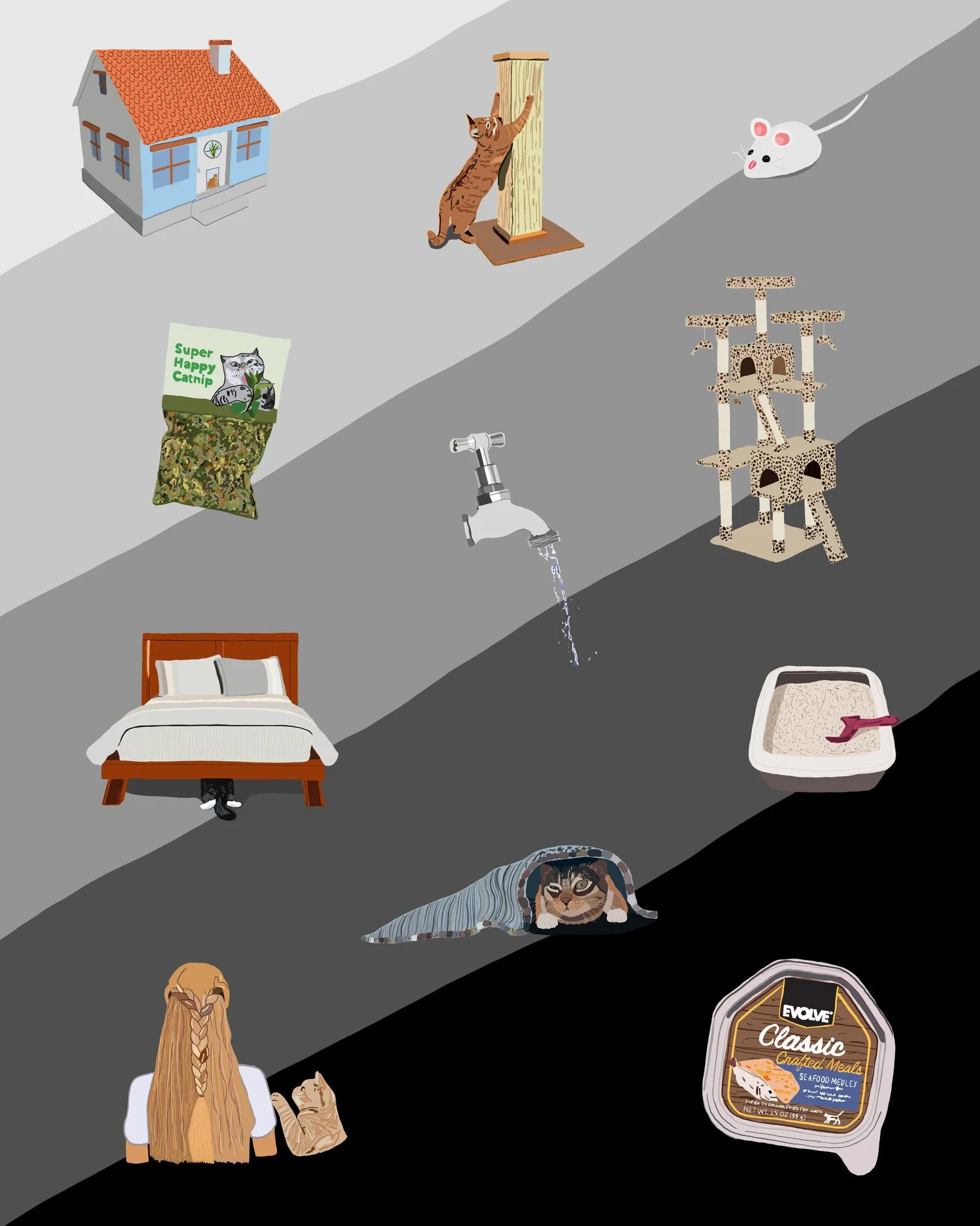 Created these hand drawn illustrations for a pet food client to use on digital platforms and social media. The idea was to represent dog and cat hierarchy of needs with fun “Pawslow’s” and “Meowslow’s” illustrations. I created each of the illustrations and all elements by hand. This was a fun one!