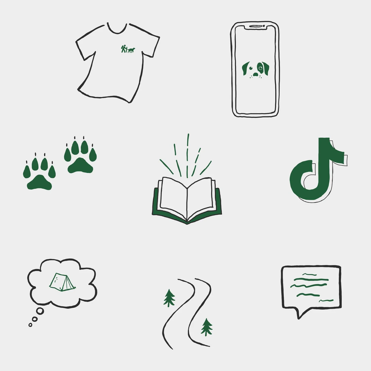 Created by the CEO of Parachute, Camping With Dogs is a brand and online community that supports and celebrates with the outdoor adventurers and dog lovers of the world. While at Parachute, I have had the great opportunity to work with the CWD brand from time to time, and to help create some neat things for the brand including the illustrated social assets and hand drawn logos below.
