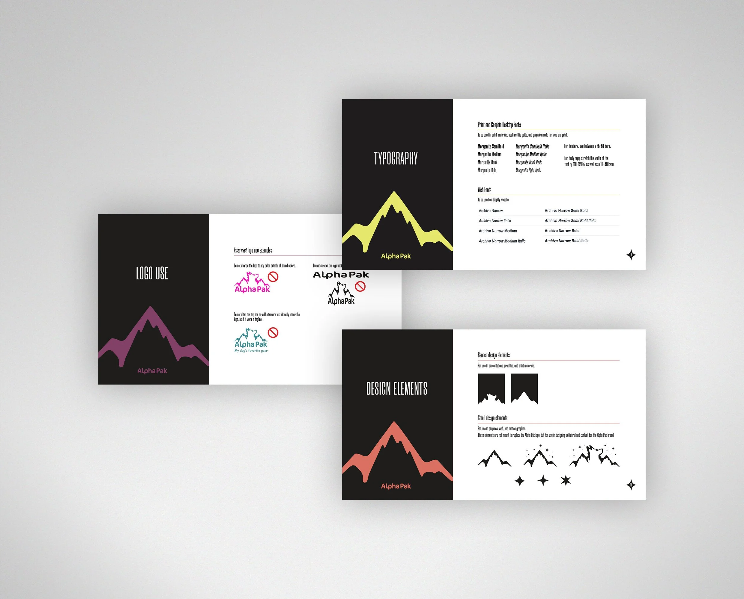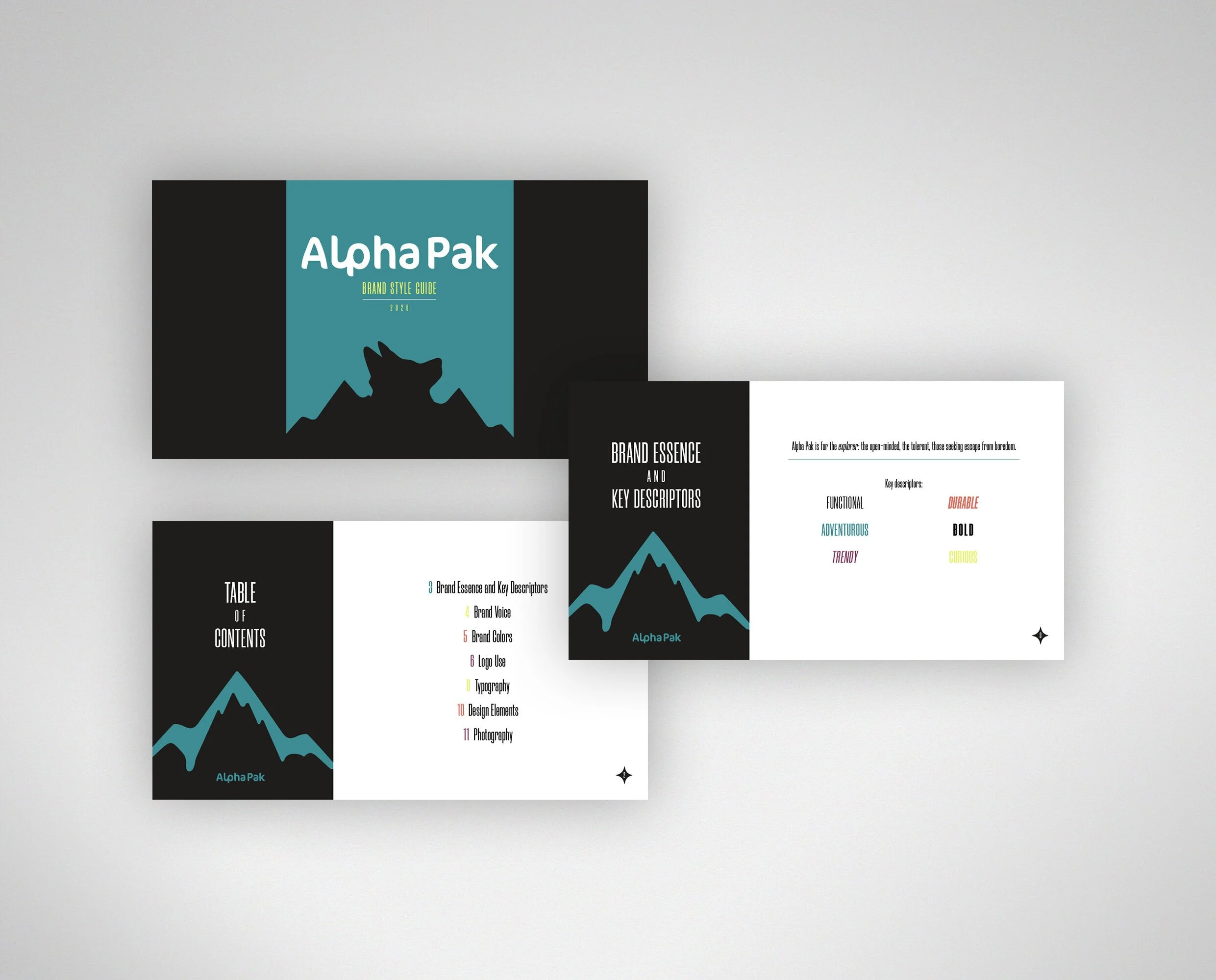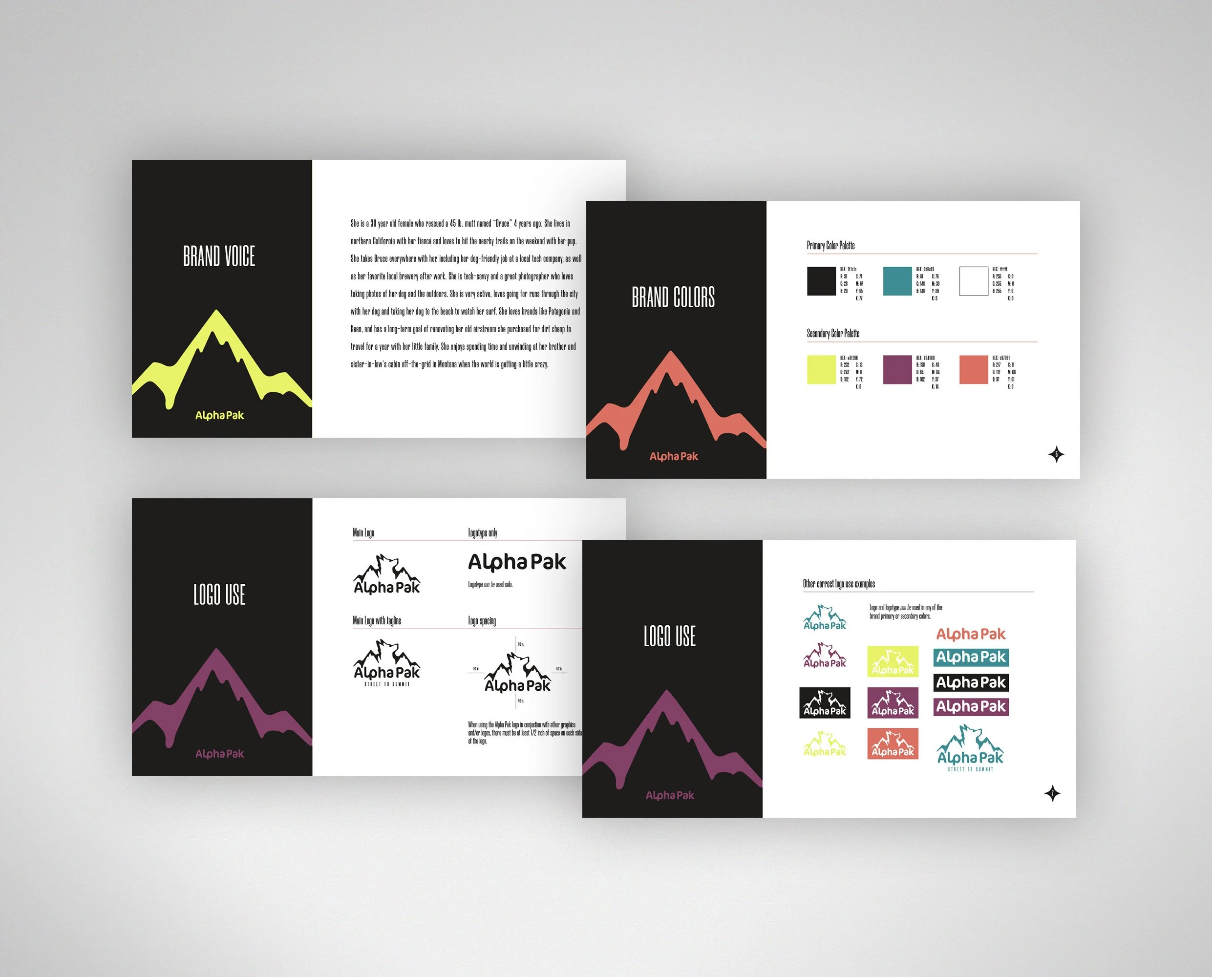 The only asset we had to support the Alpha Pak brand was the logo. So, I was asked to build the brand aesthetic. That included choosing brand typography, colors, and developing design elements from what we had. Once I chose all of those things and designed some supplementary assets, I built this brand book, complete with all of the essentials to get the brand running and consistent on all platforms.