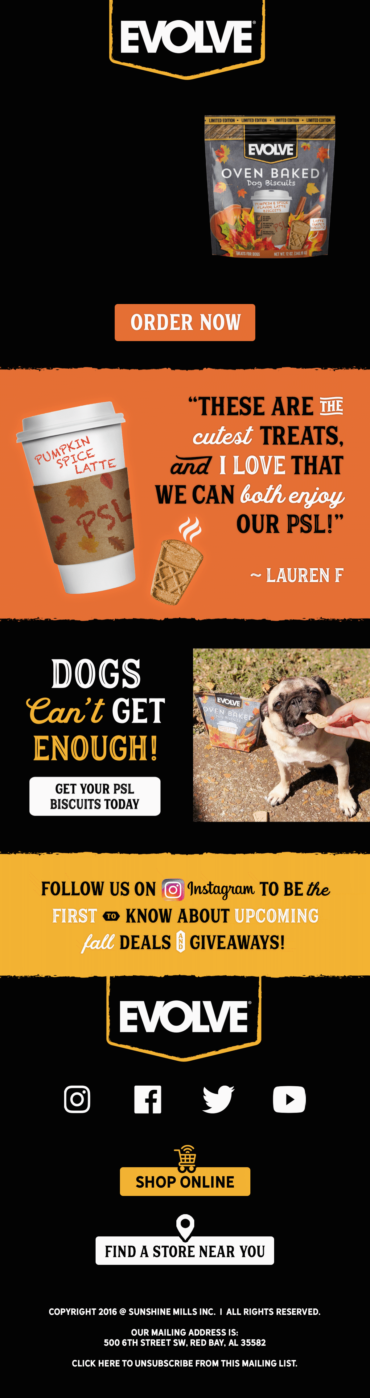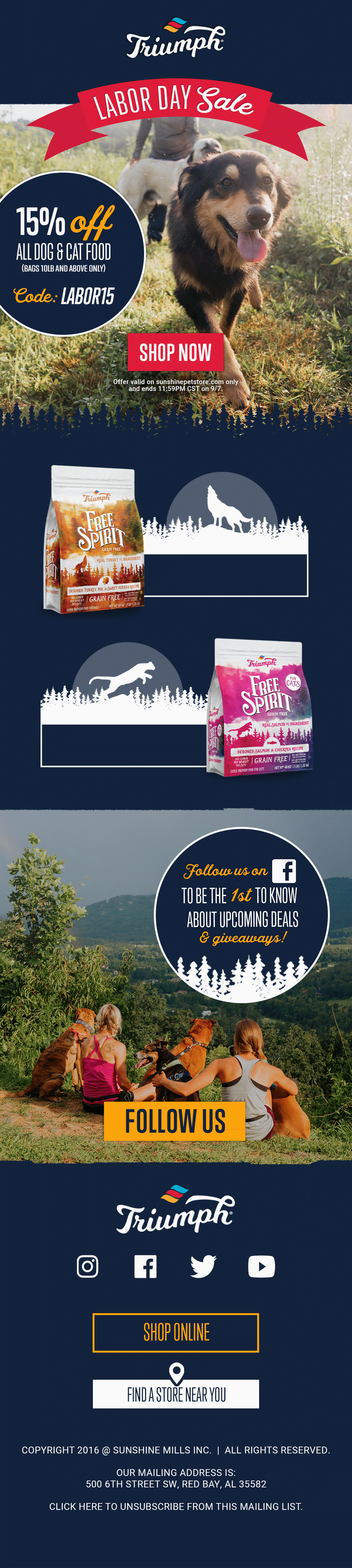 Below you will see a few examples of full email designs that I created for the Sunshine Mills dog food brands. These were very fun and highly creative…like a puzzle I have to solve most of the time, and then add my flair!