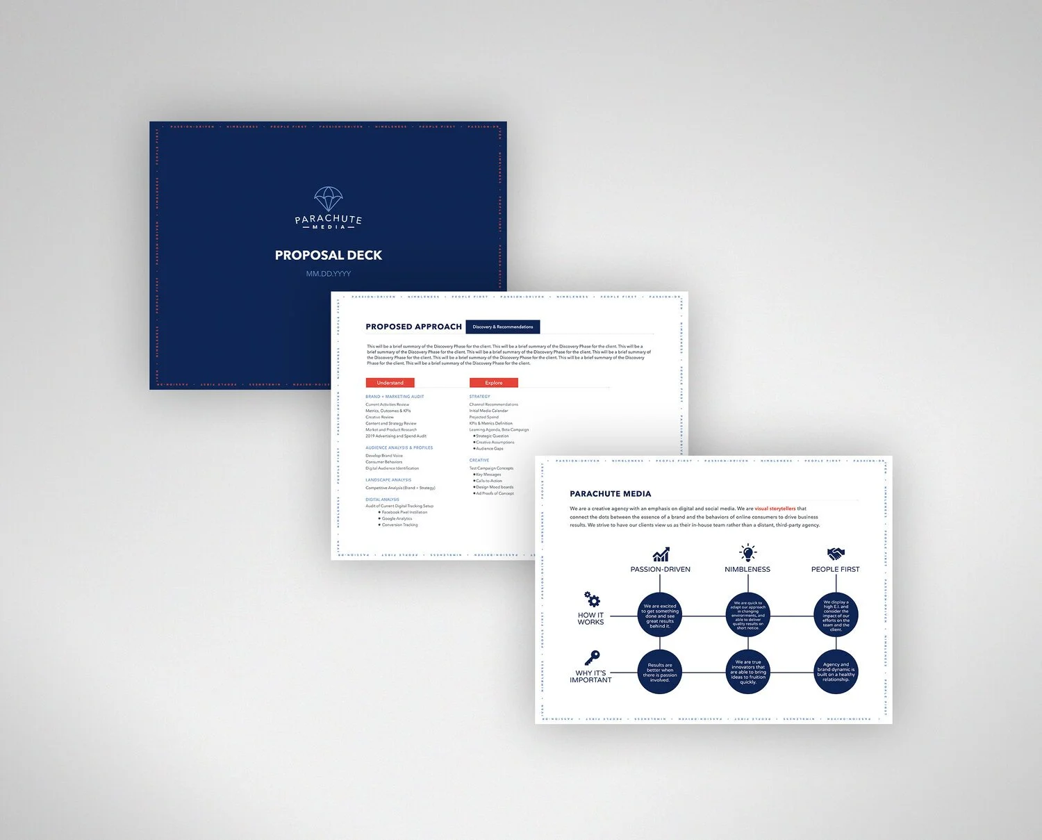 Brand identity for agencies is just as important as the brands we help build and maintain for our clients. Building a more fitting brand for Parachute Media was an ongoing project of mine while at the agency. Below you will see some examples of what that means and where design comes into play for a social media agency’s own brand.
